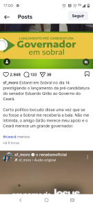 A agenda do ex-juiz é em Sobral, no lançamento da pré-candidatura de Luis Eduardo Girão, outro expoente do extremismo de direita, a governador do Ceará.